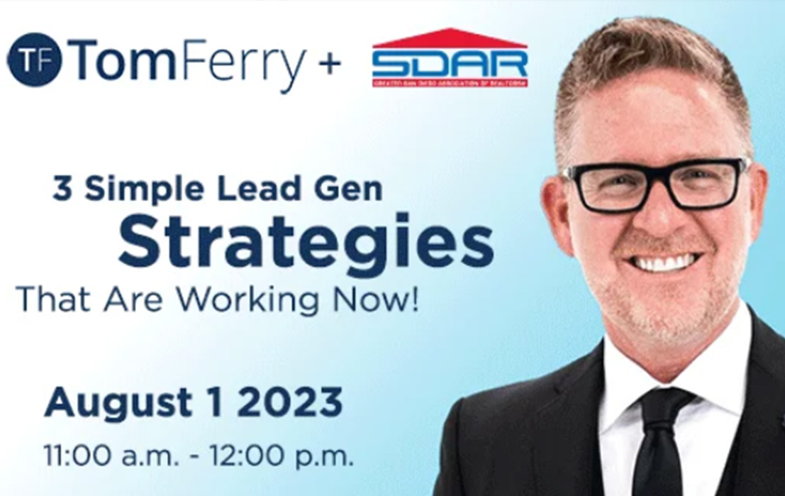 Celebrated Real Estate Coach Tom Ferry presents “3 Simple Lead Gen Strategies (That Are Working Now!)” a dynamic live webinar that will expose you to three immediately actionable tactics to generate more listing leads in today’s uncertain market.